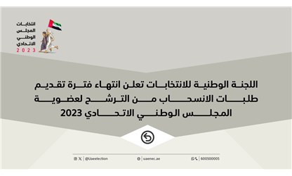 ويأتي هذا الإعلان وفق الجدول الزمني المعتمد لانتخابات المجلس الوطني الاتحادي 2023، والذي حدد يومي (25) و(26) سبتمبر لتقديم طلبات الانسحاب من الترشح لعضوية المجلس الوطني الاتحادي 2023.